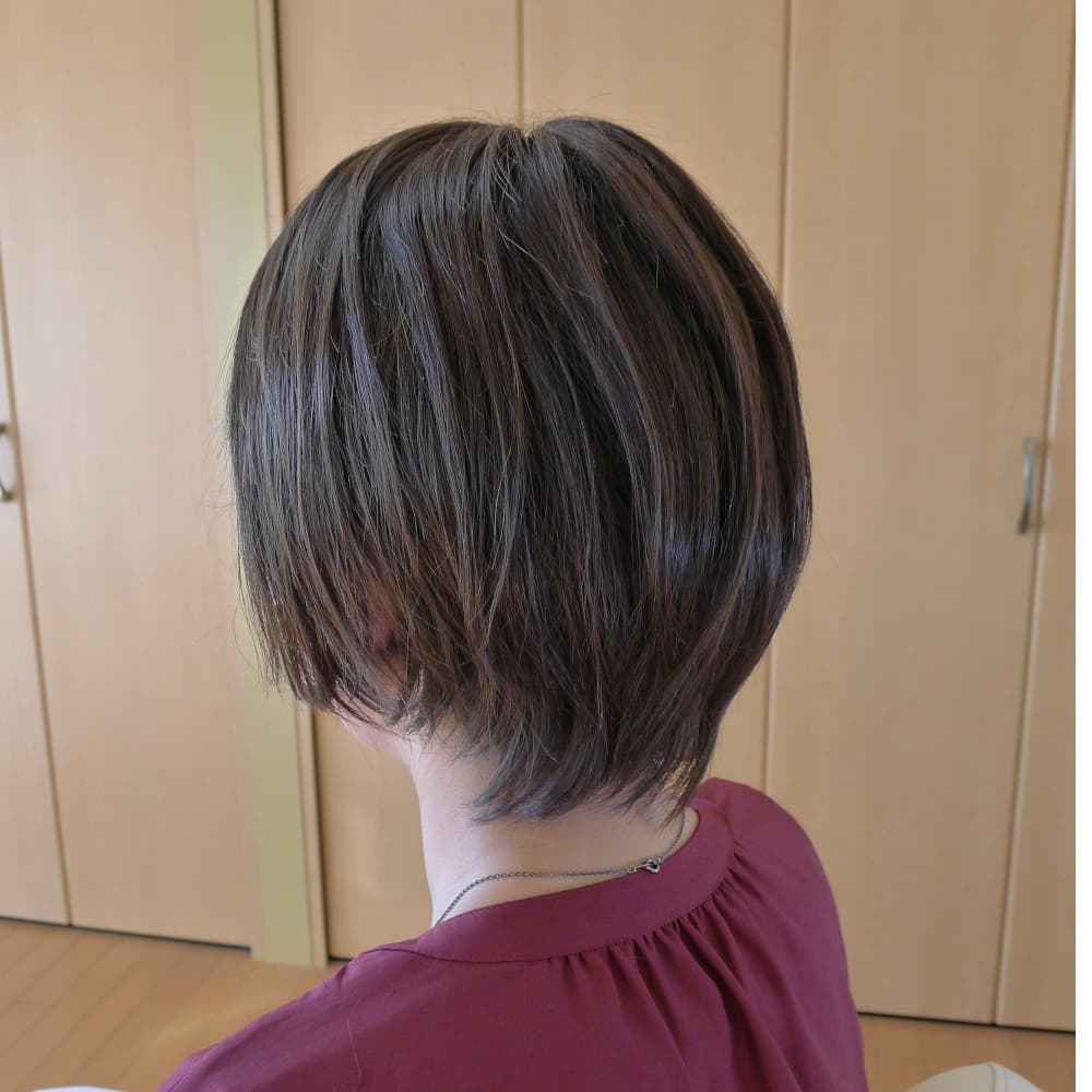 今の髪型に近づくようカットしてお作りします。また、治療中は長めに作成して、ウィッグを外す前に自毛に合わせて短めにカットすることも出来ます。